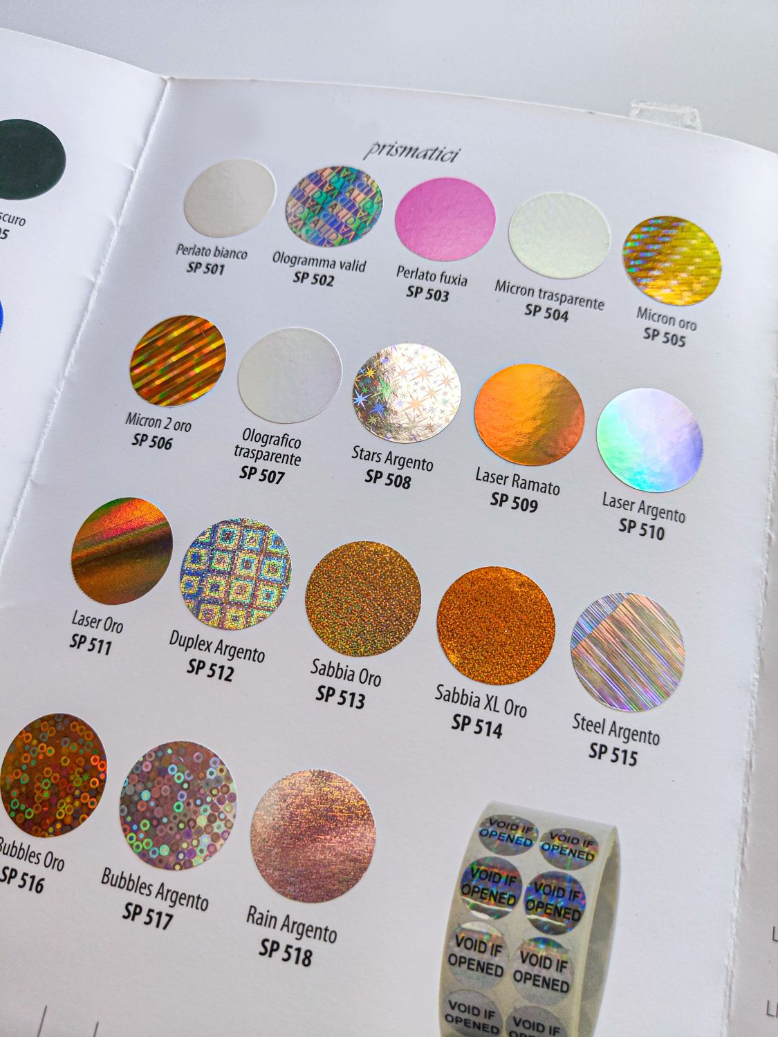 La nostra stampa a caldo offre un’ampia varietà di opzioni. Le etichette sono realizzate su carte di varie tipologie, tra cui quelle metalizzate che conferiscono un aspetto luccicante e brillante, oppure le carte con effetti brillantinati che catturano la luce in modo elegante. Anche le etichette trasparenti sono disponibili per un look discreto e raffinato.